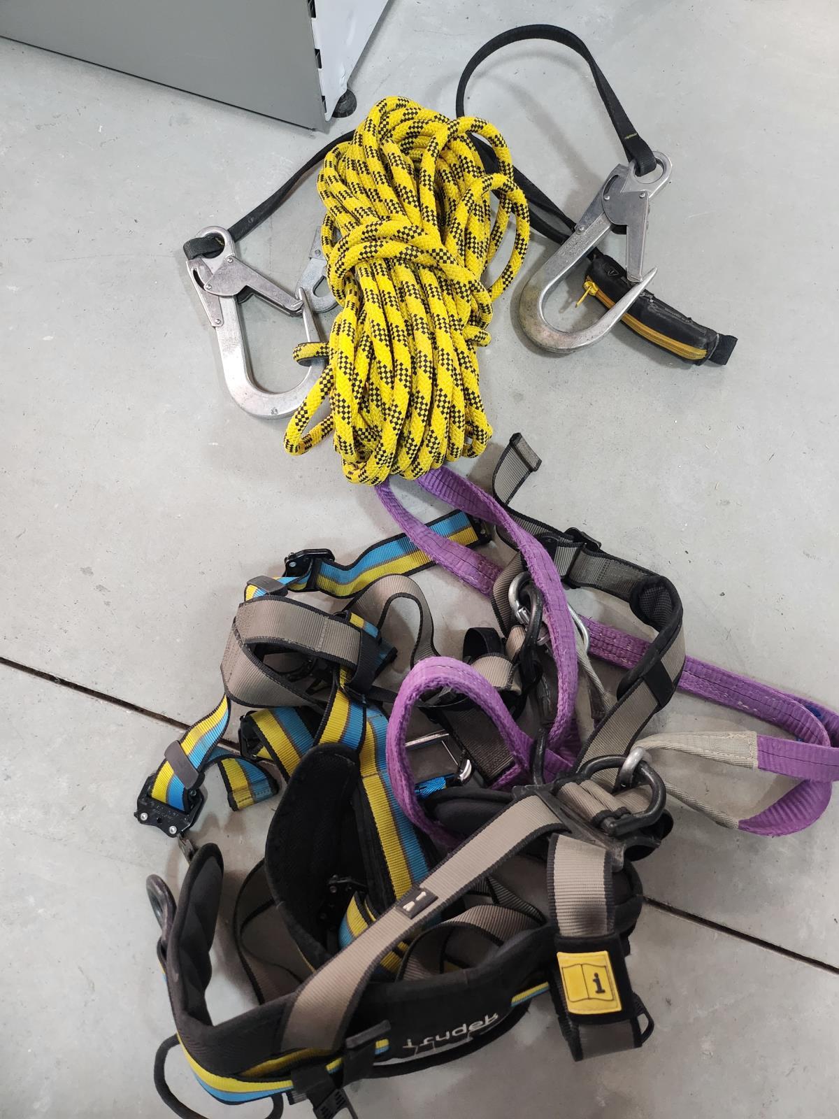 Kit arnés y cuerdas de seguridad.