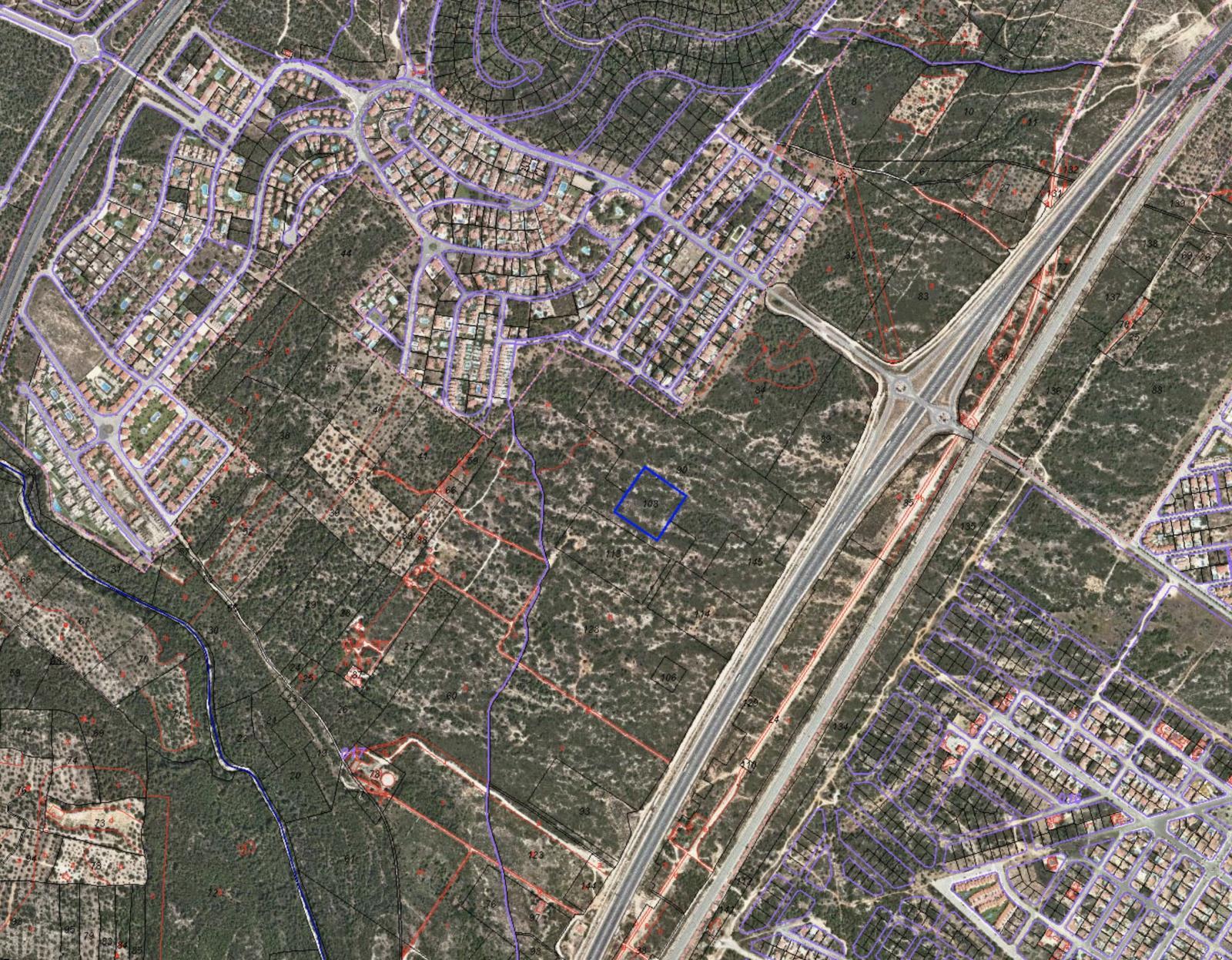 La finca presenta una configuración rectangular, con una dimensión de 98 metros de fachada y 100 metros de fondo. Está identificada como parcela 108 del polígono 16.
